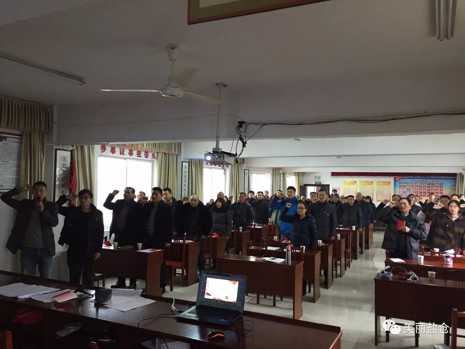 全体党员佩戴党徽,在盐仓村党总支张杰书记的带领下重温入党誓词,并学习了最新的党章。
