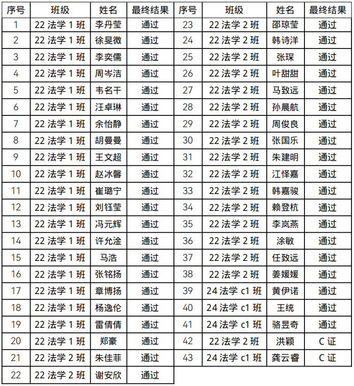 24 法学 C1 班学生作为法社学院法学专业第二届专升本学生,他们在本次法考中再创佳绩,续写新篇!客观题通过人数较去年增加 2 人,分别是李庆、张郝琦、顾逸轩、潘世佳、李得骏、韩乐乐、俞慧敏 7 名同学;通过法考人数同步增长 2 人,黄伊诺、王统、骆昱奇、龚云睿 4 名同学成功取得法律职业资格。此次成绩以客观题与法考通过人数的双增,充分展现了专升本学子扎实的专业素养与奋发进取的精神风貌,为全院同学树立了良好榜样。