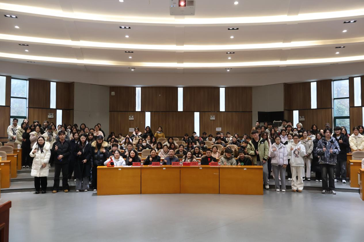 本次大会由法社学院辅导员李梦妮主持,特邀优秀校友戴中坚、叶佳,以及法社学院党总支书记叶颖蕊、学办主任马羚出席。全体大三法学学生及部分大四通过法考的学生共同参会。