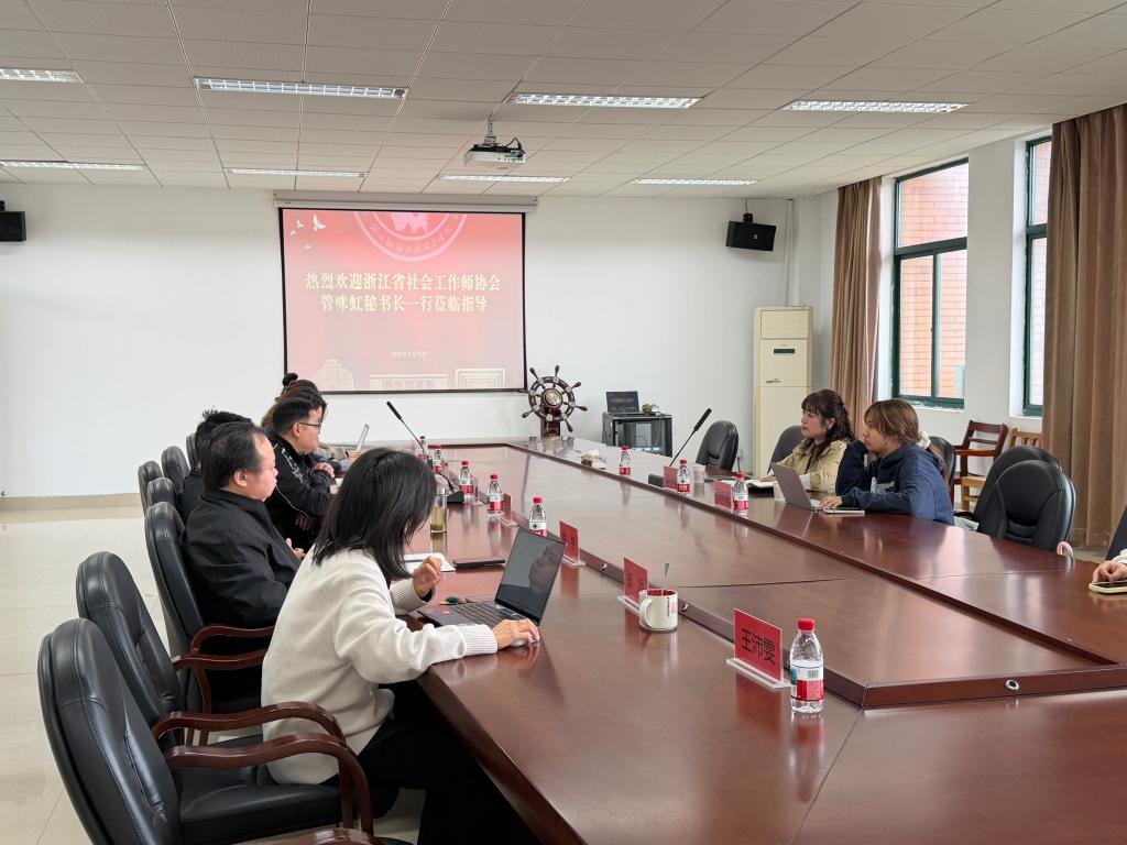 4月23日,为进一步推动社会工作专业人才培养与行业需求深度融合,我院特邀浙江省社会工作师协会秘书长管咪虹一行莅临指导,共商社会工作专业发展建设路径。法社学院院长邵培樟,党总支书记叶颖蕊,社会工作系全体教师及学生代表参加交流。