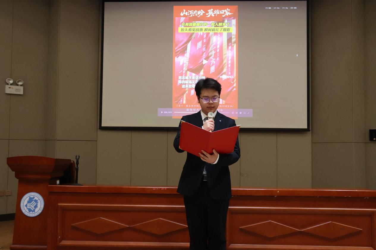 活动伊始,相继播放的两个关于送志愿军遗骸回家的短片使得不少同学红了眼眶。也让我们深刻地读懂了“英雄回家”四个字背后,跨越七十余载的牵挂与荣光。