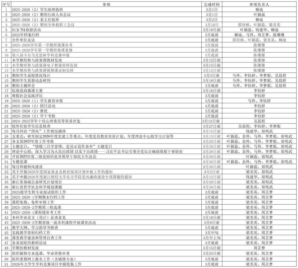 法律与社会工作学院2026年3月工作计划表