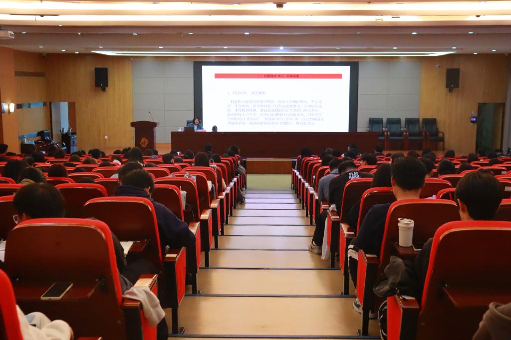 11月4日下午,马克思主义学院思政大讲堂(2025年第2期,总第51期)在学术交流中心二号报告厅举办。本次活动邀请浙江共产党员杂志集团高级编辑谢庆梅老师,以“赓续抗战精神血脉,铸牢青年信仰根基”为主题,围绕“同仇敌忾,共御外侮——抗日战争在浙江”展开专题讲座。马克思主义学院党总支书记叶颖蕊主持并参与了本次活动,全院约300余名师生前来聆听本次讲座。