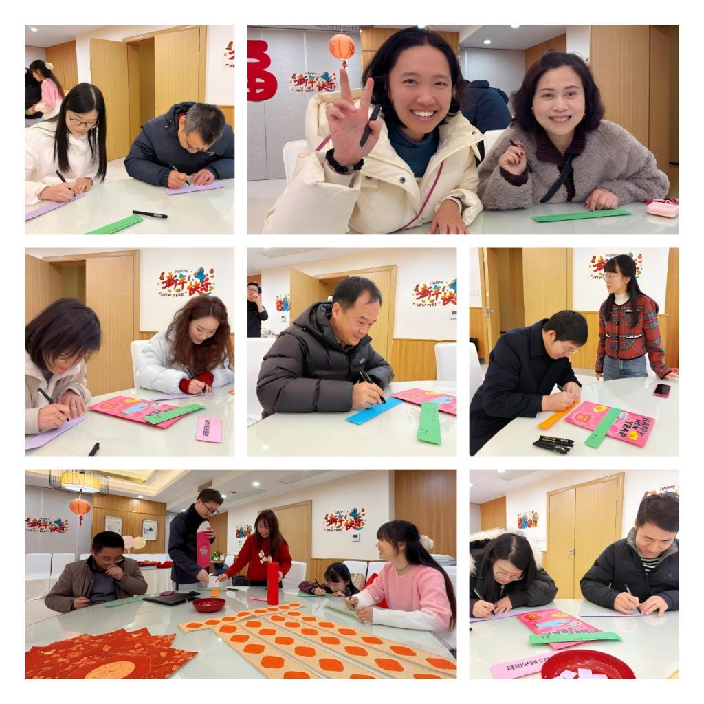 与此同时,有才气的周立波和叶延玺现场挥毫泼墨,为大家书写春联和福字。红纸黑字,笔走龙蛇,饱含祝福,寓意吉祥。这些珍贵的墨宝通过抽奖的方式送给了幸运的老师,将新年的第一份祝福带回家。