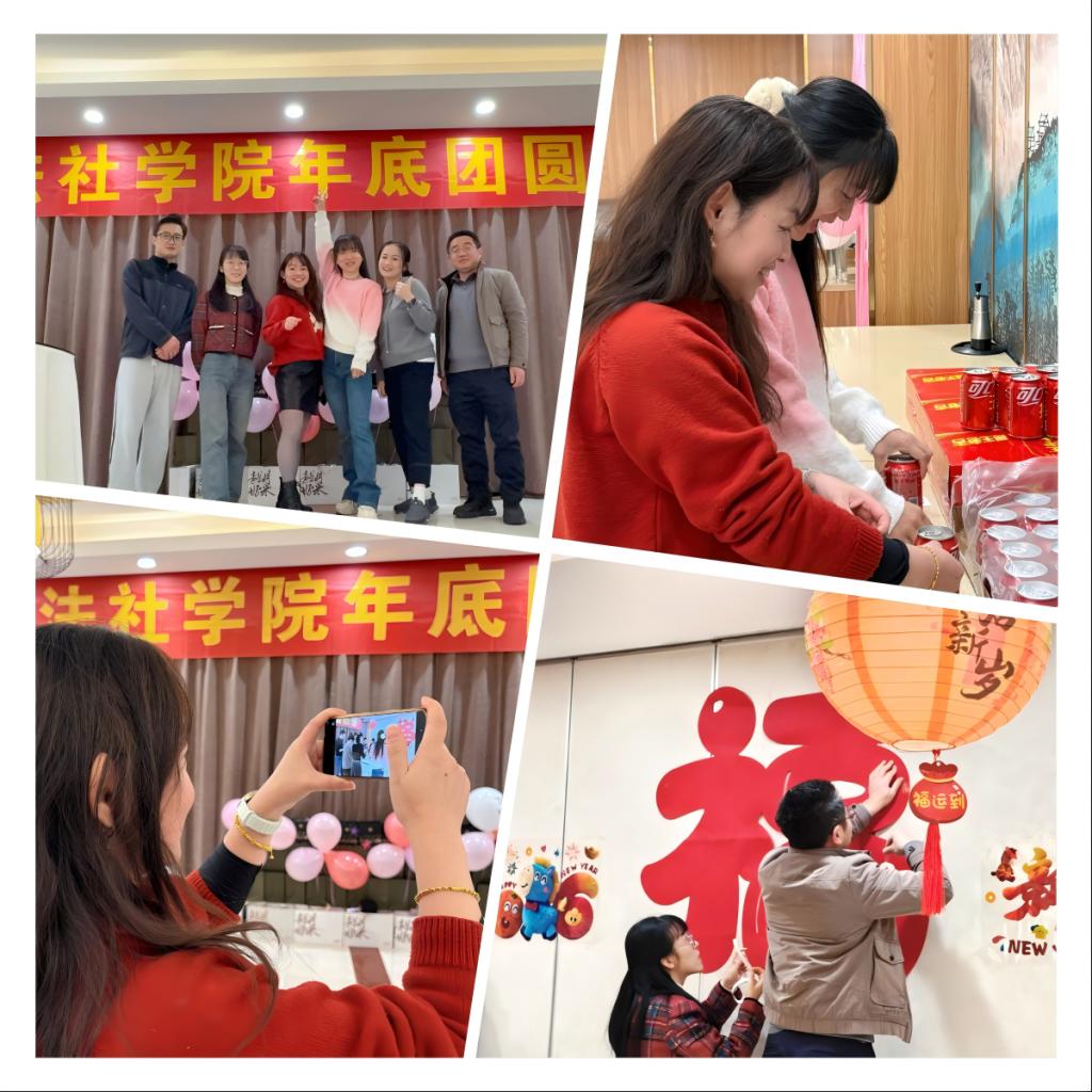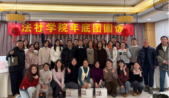 当冬日的阳光洒满校园,新年的脚步悄然而至,我们法社学院这个大家庭,也迎来了一年中最温暖的相聚。2026年1月21日,我们暂时放下繁忙的工作,43位教职工齐聚学术中心丹桂厅,共同举办了一场年末团圆活动。这不仅是一次简单的聚餐,更是一场充满欢声笑语、暖意融融的“家宴”。